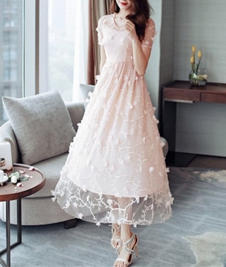 オーガンジーのシースルーに花びらが舞う