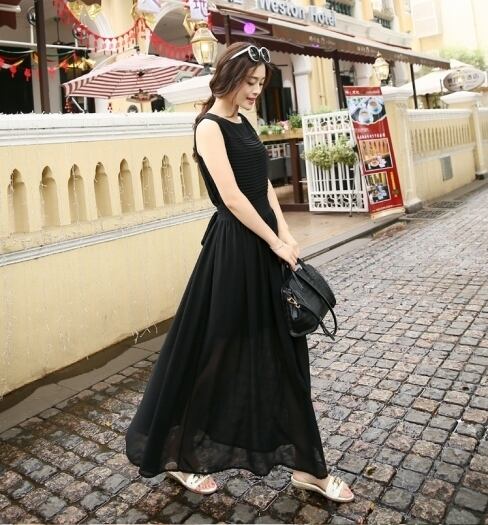 風になびくとフワリと広がるロング丈のワンピースです。