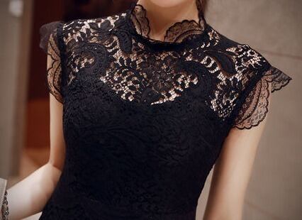 胸元と裾部分には透け感があり、重くなりがちな黒も軽やかに着こなせます。