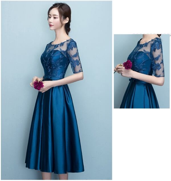 パーティードレス 結婚式 二次会 ワンピース 結婚式 お呼ばれ お呼ばれドレス 披露宴 お呼ばれドレス 袖あり 膝丈 ミモレ丈 膝丈ワンピ 20代 30代 40代 発表会 記念日 エレガント 清楚 きれい 大人 上品 フォーマルドレス ウェディング 謝恩会 K040