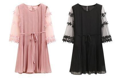 全身のプリーツが可愛らしい印象にしてくれるワンピースです。