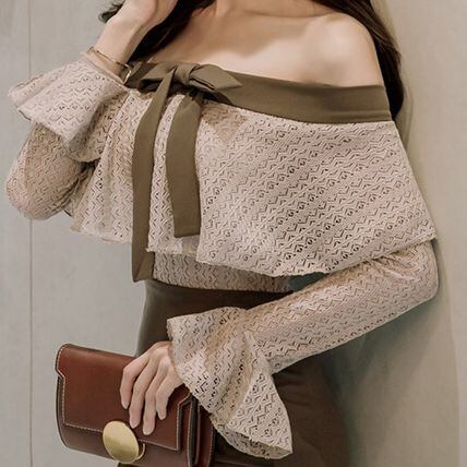 胸元に付いたリボンとキャンディスリーブが可愛いオフショルダーのパーティードレスです。