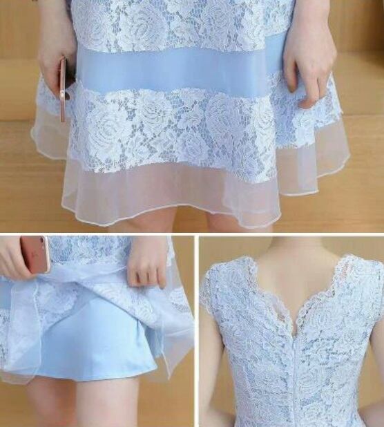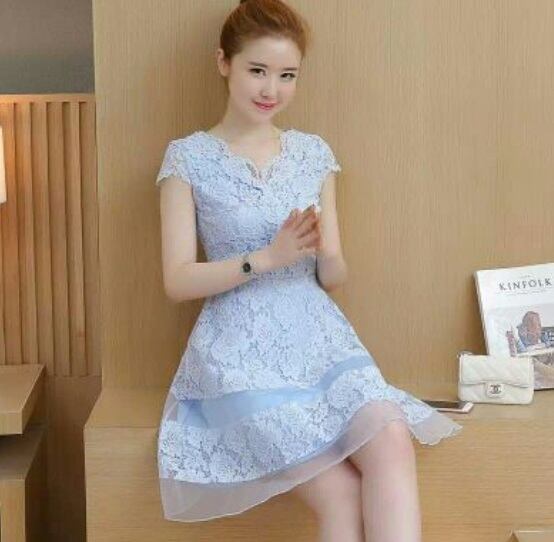 花柄のレースと透け感のあるシフォン素材を組み合わせた華やかなワンピース。