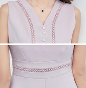 胸元からウエストにかけてつけたボタンには、スタイルをよく見せるIライン効果も。