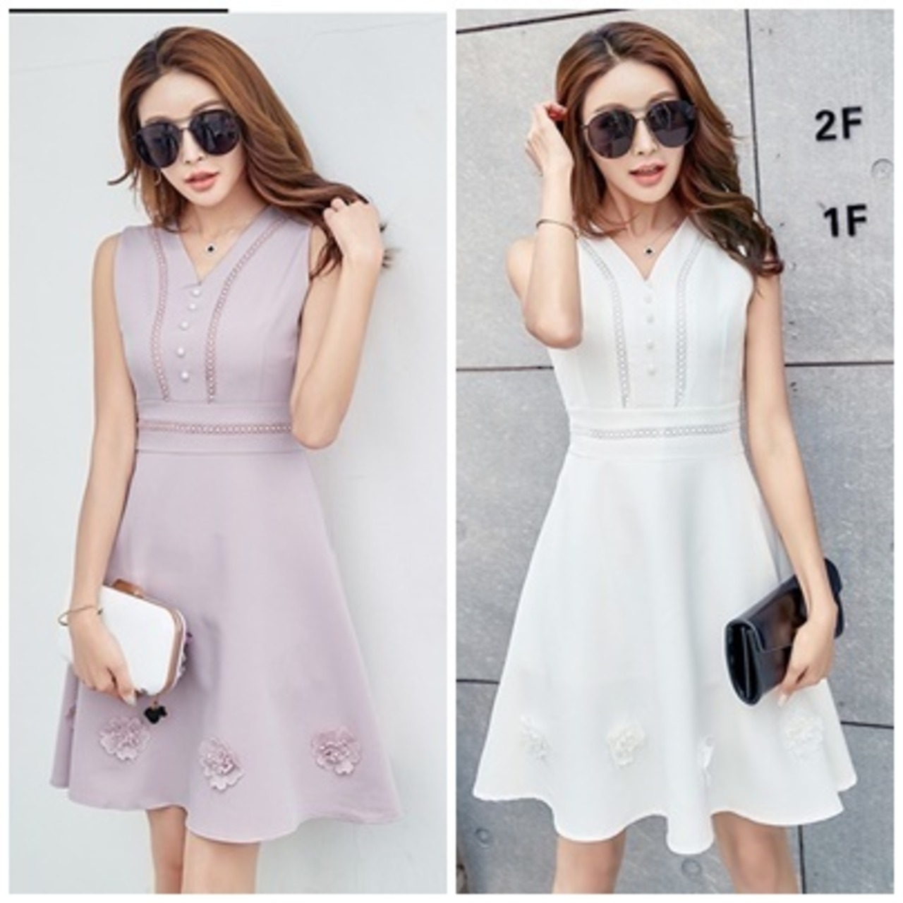 スカートの立体的なフラワーモチーフがおしゃれのポイントになる1枚です。