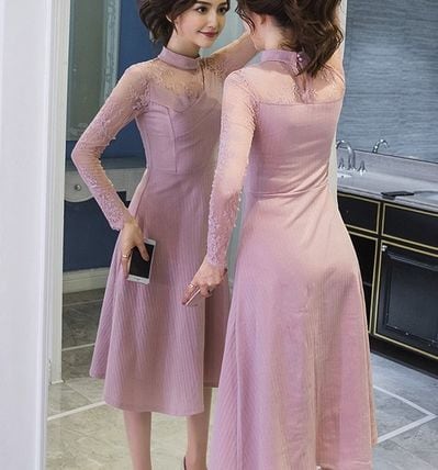 パーティードレス 結婚式 二次会 ワンピース 結婚式 お呼ばれ お呼ばれドレス 披露宴 お呼ばれドレス 袖あり 膝丈 ミモレ丈 膝丈ワンピ 20代 30代 40代 発表会 記念日 エレガント 清楚 きれい 大人 上品 フォーマルドレス ウェディング 謝恩会K091