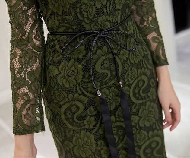タイトなラインですがレース袖で二の腕カバー◎