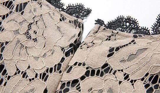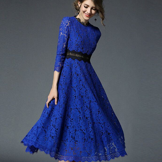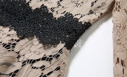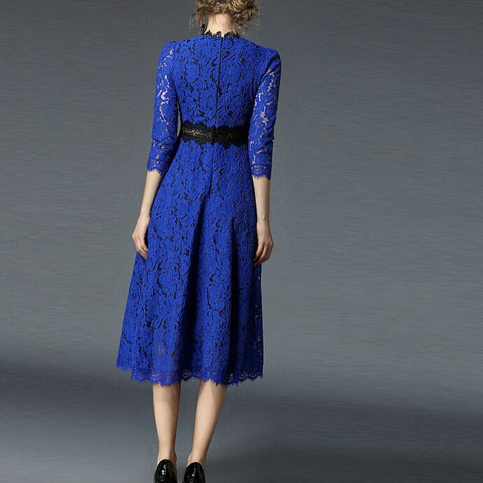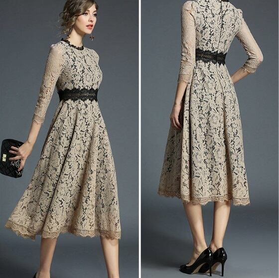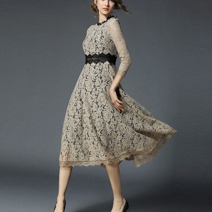 ハイウエストのレースドレスなので二の腕カバーや脚長効果◎