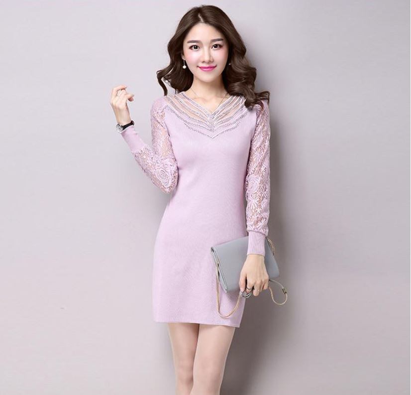 ショート丈ワンピース Vネック 長袖 スリム スカートレース ドレス エレガント 大人 上品 結婚式二次会 お呼ばれ 2018年新作 婚活パーティー フォーマルドレス 披露宴 結婚式ドレス ウェディング 結婚式 謝恩会 パーティードレス K103