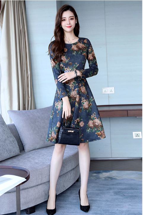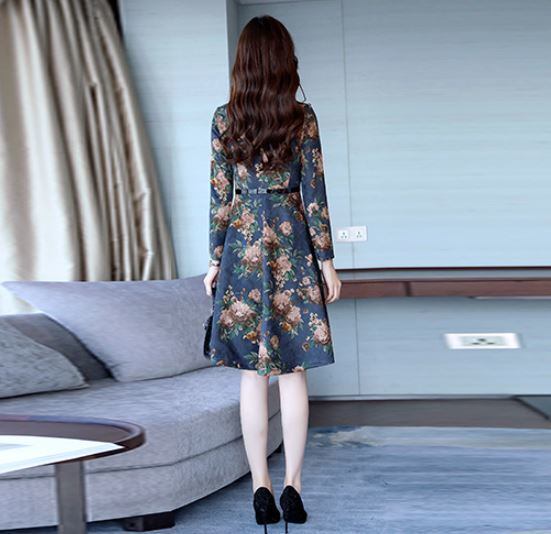 ミモレ丈ワンピース 長袖 レトロ 花柄プリント ワンピース エレガント 大人 上品 結婚式二次会 お呼ばれ 2018年新作 婚活パーティー フォーマルドレス 披露宴 結婚式ドレス ウェディング 結婚式 謝恩会 パーティードレス K113