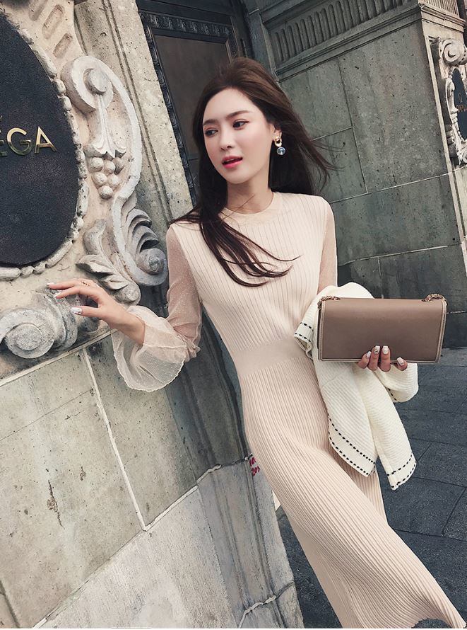 ロングドレス 長袖 スリム スリットスカート ニットドレス エレガント 大人 上品 結婚式二次会 お呼ばれ 2018年新作 婚活パーティー フォーマルドレス 披露宴 結婚式ドレス ウェディング 結婚式 謝恩会 パーティードレス K130