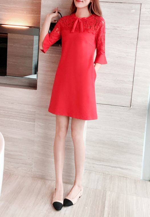 ショート丈ワンピース 7分袖 レース ドレス パーティードレス 結婚式 二次会 フォーマルワンピース 結婚式 お呼ばれ 披露宴 袖ありミニ丈 ワンピ 20代 30代 40代 演奏会 発表会 記念日 大きいサイズ ウェディング 謝恩会 入学式 レース 上品 華やか K133