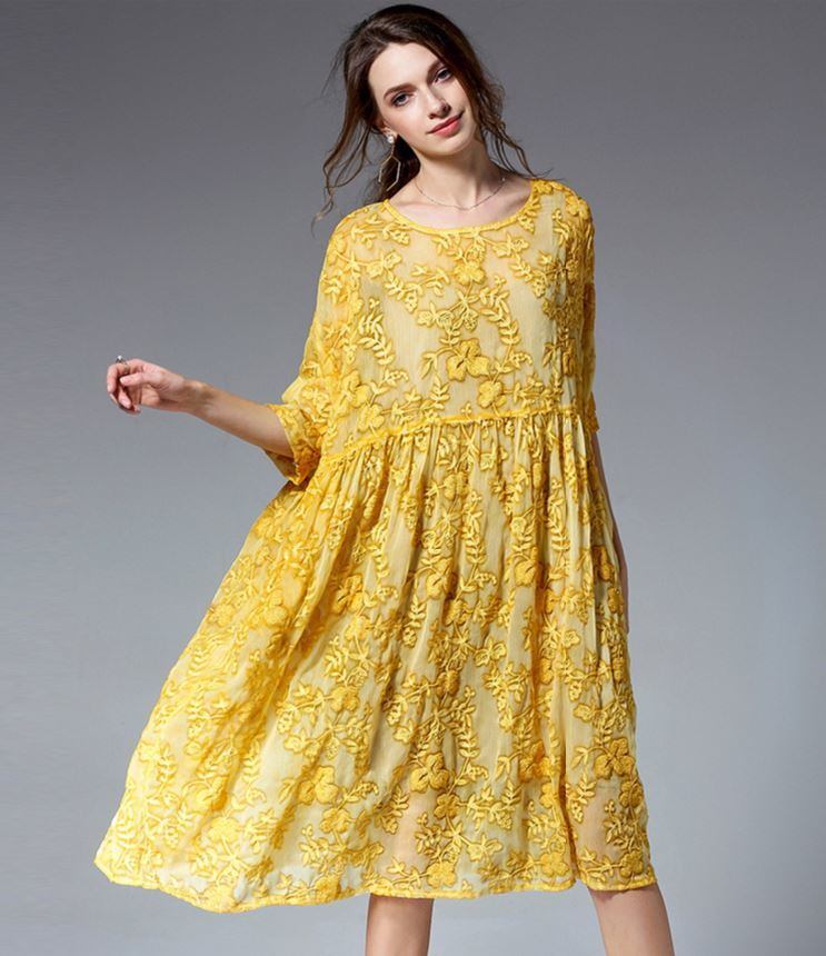 刺しゅう 大きなサイズのドレス パーティードレス 結婚式 二次会 ワンピース 結婚式 お呼ばれ フォーマル 披露宴 大きいサイズ 袖あり 膝丈 ミモレ丈 膝丈ワンピ 20代 30代 40代 演奏会 発表会 記念日 エレガントウェディング 謝恩会 上品 観劇 レース Aライン K154