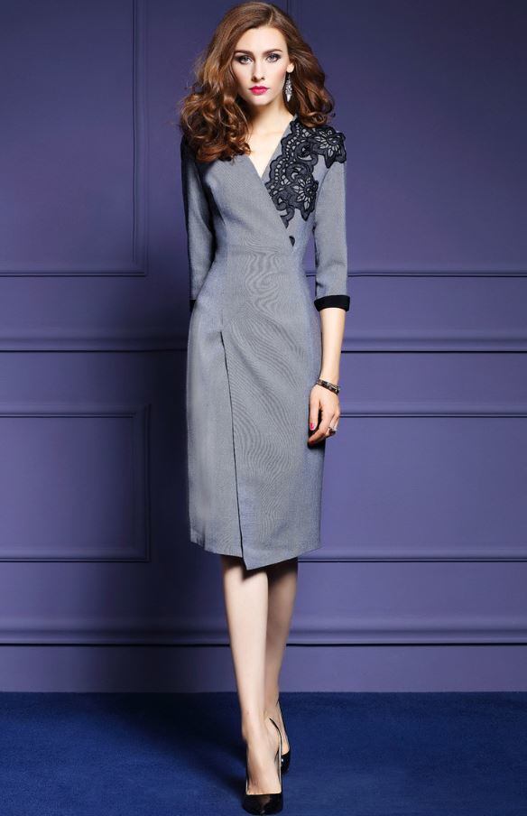 ニット コットン 刺しゅう ワンピース パーティードレス 結婚式 二次会 ワンピース 結婚式 お呼ばれ フォーマル 披露宴 大きいサイズ 袖あり 膝丈 ミモレ丈 膝丈ワンピ 20代 30代 40代 演奏会 発表会 記念日 エレガントウェディング 謝恩会 上品 観劇 レース Aライン K155