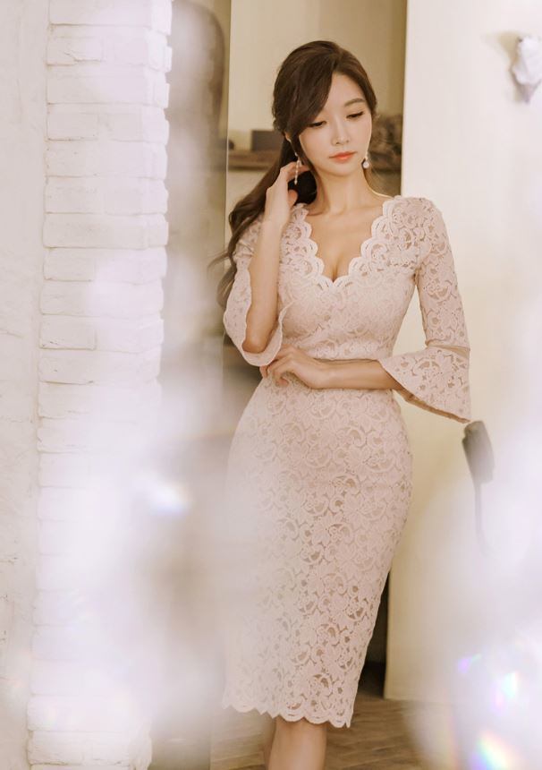 Vネック トランペットスリーブ レースドレス パーティードレス 結婚式 二次会 ワンピース 結婚式 お呼ばれ フォーマル 披露宴 大きいサイズ 袖あり 膝丈 ミモレ丈 膝丈ワンピ 20代 30代 40代 演奏会 発表会 記念日 エレガントウェディング 謝恩会 上品 観劇 レース Aライン K165