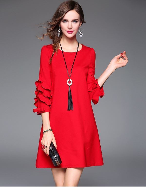 花びらの袖 大きな赤いドレス パーティードレス 結婚式 二次会 フォーマルワンピース 結婚式 お呼ばれ 披露宴 袖ありミニ丈 ワンピ 20代 30代 40代 演奏会 発表会 記念日 大きいサイズ ウェディング 謝恩会 入学式 レース 上品 華やか K170