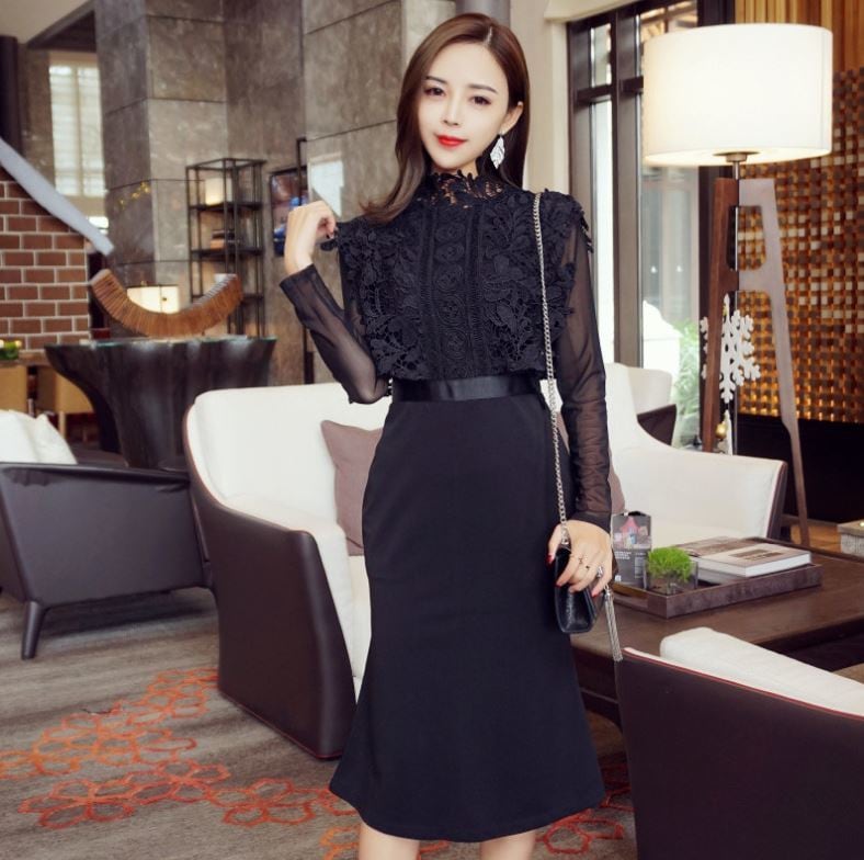 長袖 黒いレース イブニングドレス パーティードレス 結婚式 二次会 ワンピース 結婚式 お呼ばれ フォーマル 披露宴 大きいサイズ 袖あり 膝丈 ミモレ丈 膝丈ワンピ 20代 30代 40代 演奏会 発表会 記念日 エレガントウェディング 謝恩会 上品 観劇 レース Aライン K174
