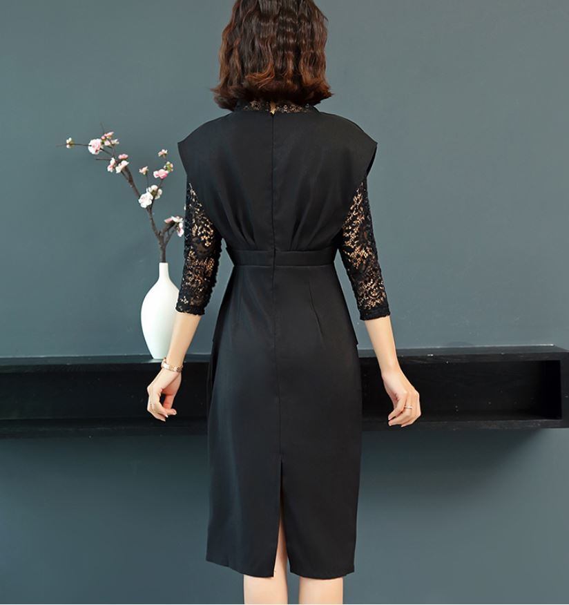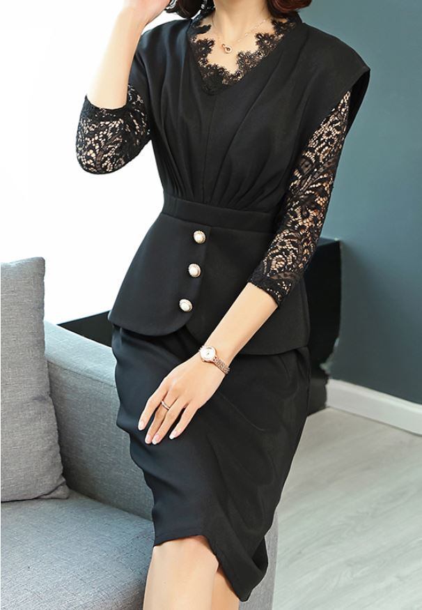 スリム ハイウエスト Vネック ドレス パーティードレス 結婚式 二次会 ワンピース 結婚式 お呼ばれ フォーマル 披露宴 大きいサイズ 袖あり 膝丈 ミモレ丈 膝丈ワンピ 20代 30代 40代 演奏会 発表会 記念日 エレガントウェディング 謝恩会 上品 観劇 レース Aライン K196