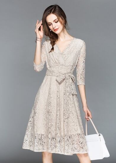 パーティードレス 結婚式 二次会 ワンピース 結婚式 お呼ばれ フォーマル 披露宴 大きいサイズ 袖あり 膝丈 ミモレ丈 膝丈ワンピ 20代 30代 40代 演奏会 発表会 記念日 エレガントウェディング 謝恩会 上品 観劇 レース Aライン【J18】