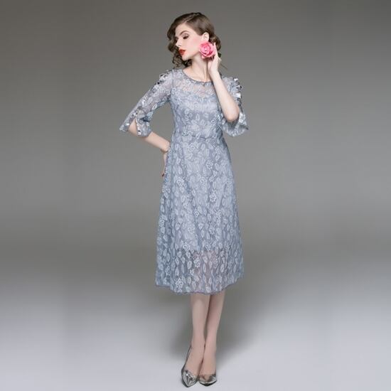 パーティードレス 結婚式 二次会 ワンピース 結婚式 お呼ばれ フォーマル 披露宴 大きいサイズ 袖あり 膝丈 ミモレ丈 膝丈ワンピ 20代 30代 40代 演奏会 発表会 記念日 エレガントウェディング 謝恩会 上品 観劇 レース Aライン【J32】
