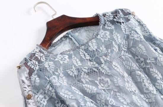 落ち着いた色味のグレーにレースがほどこされ、大人の女性の雰囲気がある一枚です。