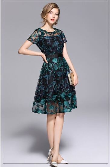 全体の透け感と刺繍のコラボレーションがお洒落なドレスワンピース♪