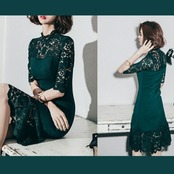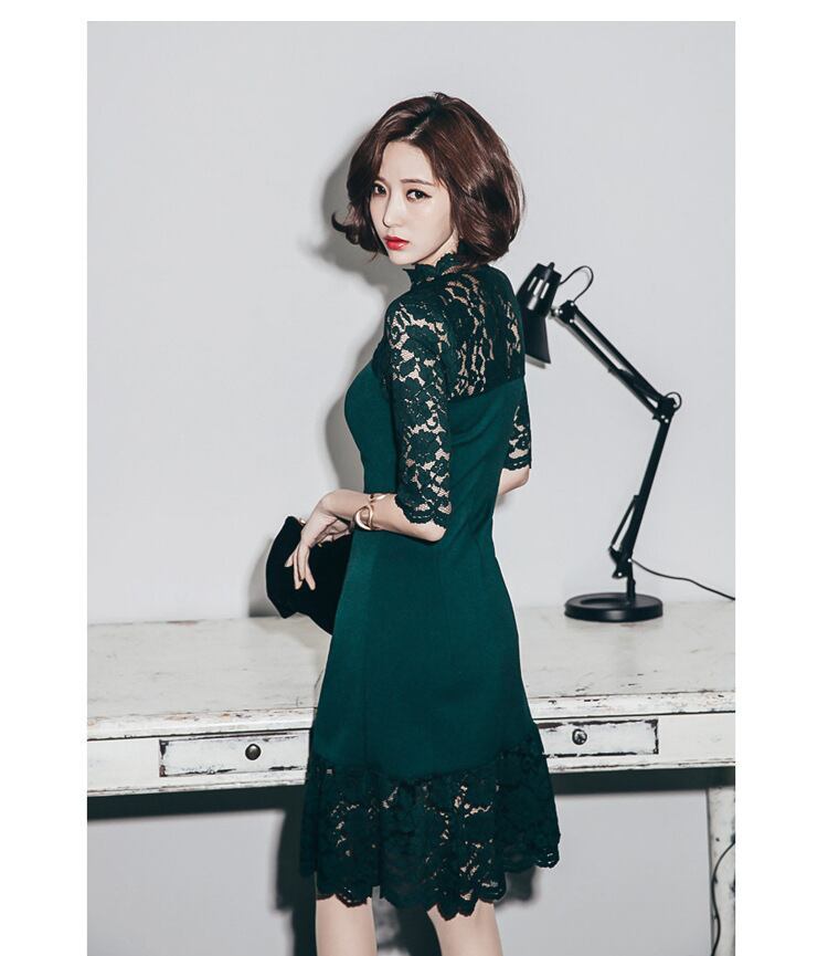 【一部即納】グリーン レース タイト ワンピース パーティドレス パーティードレス 結婚式 二次会 ワンピース 結婚式 お呼ばれ フォーマル 披露宴 大きいサイズ 袖あり 膝丈 ミモレ丈 膝丈ワンピ 20代 30代 40代 演奏会 発表会 記念日 エレガントウェディング 謝恩会 上品 観劇 レース