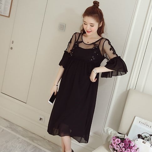 2色 マタニティ 立体フラワーモチーフ ワンピースドレス パーティードレス 結婚式 二次会 フォーマルワンピース 結婚式 お呼ばれ 披露宴 袖ありミニ丈 ワンピ 20代 30代 40代 演奏会 発表会 記念日 大きいサイズ ウェディング 謝恩会 入学式 レース 上品 華やか