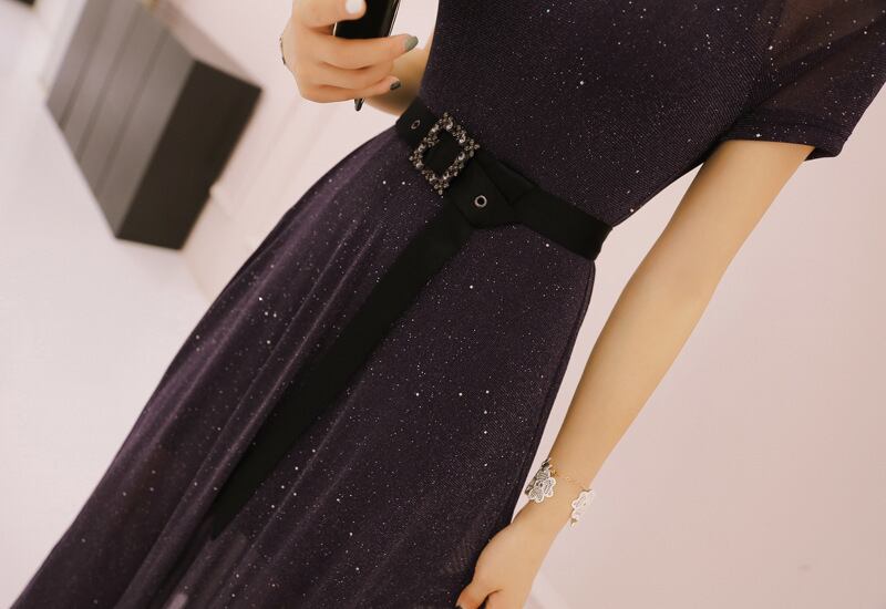 シースルー ロングドレス ラグランスリーブ パーティードレス