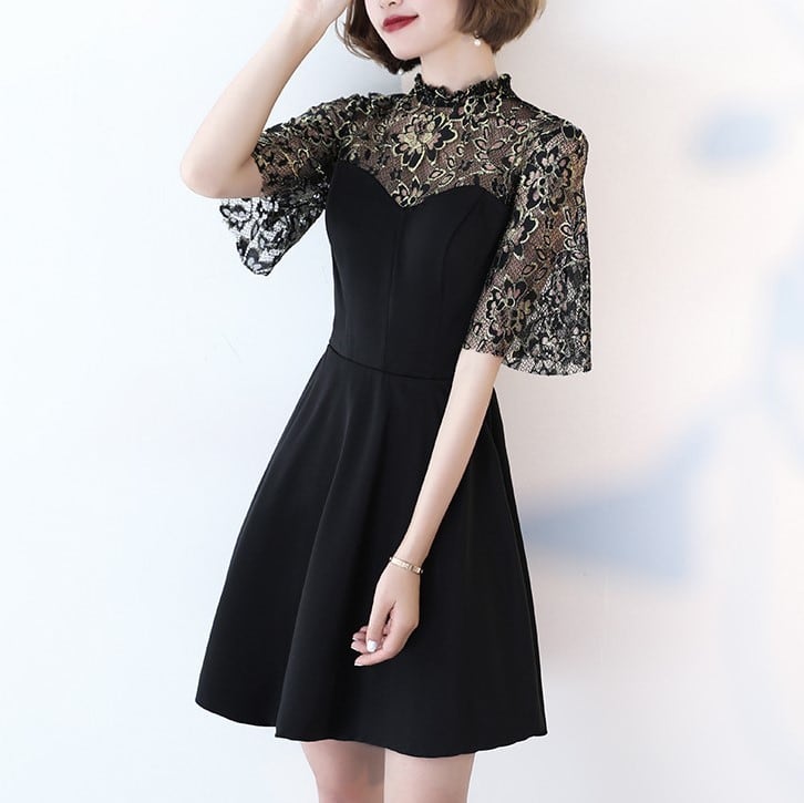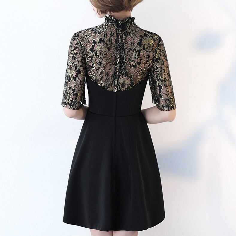 ドレス パーティドレス ミニ丈ドレス 披露宴 結婚式 ブライズメイド お呼ばれ ゴールドミックス 花柄 デコルテレース ミニ ワンピース ドレス