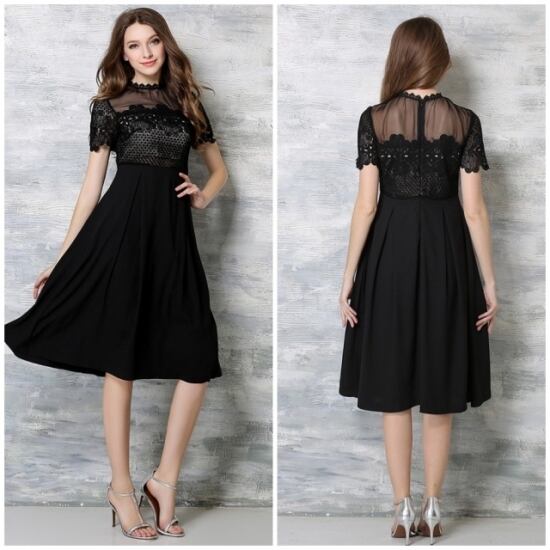 レース刺繍ひざ丈パーティドレス★