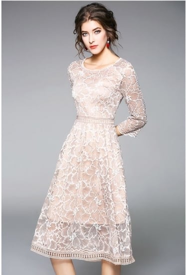 【一部即納】パーティードレス 結婚式 二次会 ワンピース 結婚式 お呼ばれ フォーマル 披露宴 大きいサイズ 袖あり 膝丈 ミモレ丈 膝丈ワンピ 20代 30代 40代 演奏会 発表会 記念日 エレガントウェディング 謝恩会 上品 観劇 レース 【J49】