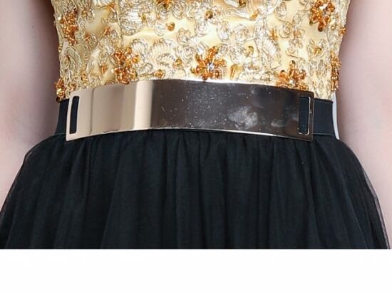 フラワーモチーフとチュールの切換えが存在感のあるドレス