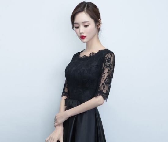 ミディ丈 五分袖 ブラック レース ドレス 結婚式 二次会 パーティー セレブ会【J97】