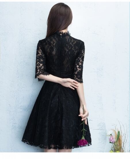 ラブリー レース刺繍 フレア ドレスワンピース 結婚式二次会 ブラック 総レース パーティー【J100】