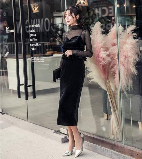 白で大人の色気。七分袖のフェミニンなデザインで、シックな黒は華やかな着こなしをリッチに格上げします。