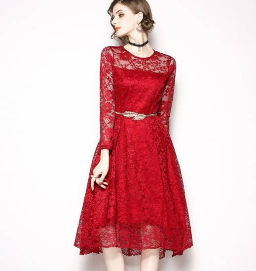 上品でシンプルなデザインにチャームポイント満載のミモレ丈のフレアーワンピースドレス。