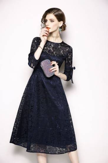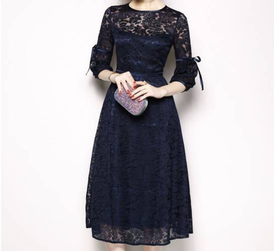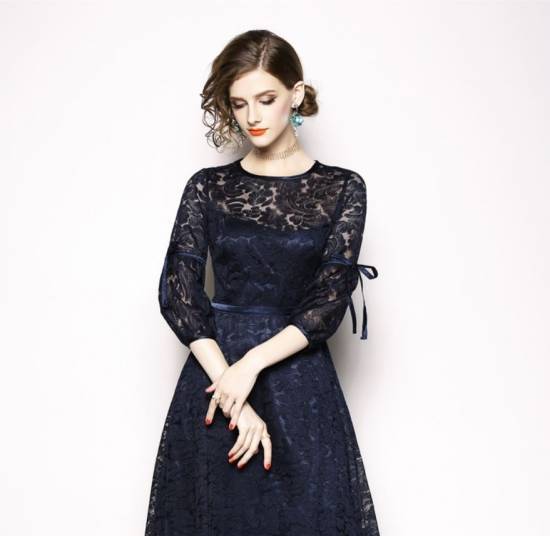 花柄総レースとAラインの程よいボリュームフレアスカートがエレガントで上品な大人の女性を演出してくれます。