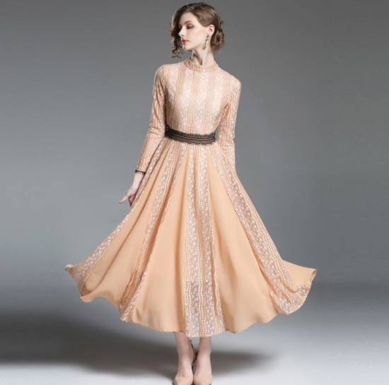エレガントな雰囲気を演出するフレアワンピースです。