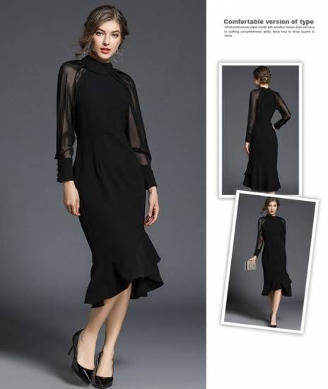 全体がシックで落ち着きのあるブラック、軽やかなAラインのフレアスカートは、清楚で上品に女性らしく、エレガントに大人可愛くおしゃれに決まります。