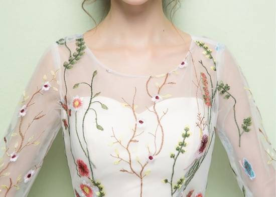 シースルー素材にボタニカル刺しゅうをあしらった大人気のデザイン。