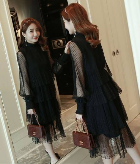 ドット柄の可愛いレースを使用したワンピースドレスです。
