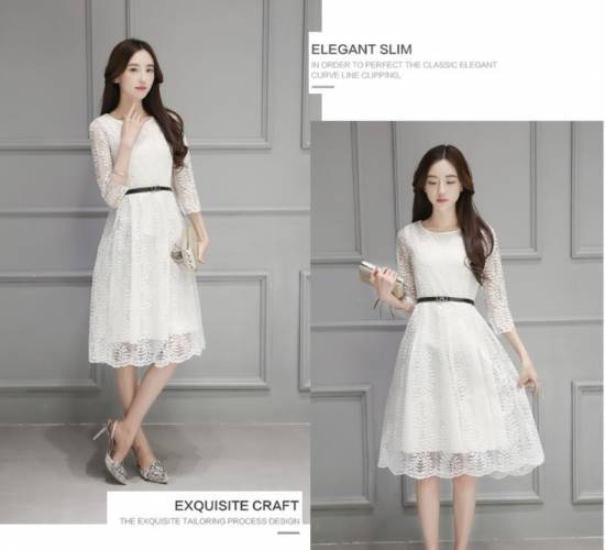 エレガントな雰囲気を演出する総レースのフレアワンピースです。