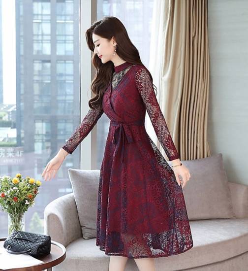総レースとAラインの程よいボリュームフレアスカートがエレガントで上品な大人の女性を演出してくれます。