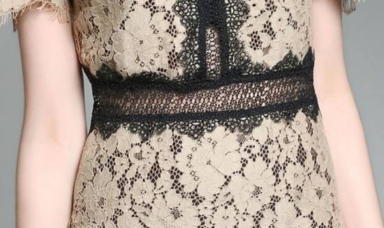 ベージュのレースをブラックレースでキリリと引き締めたワンピース。
