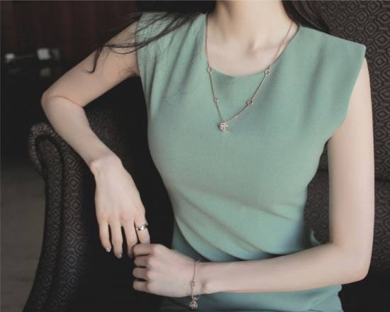 優雅なラウンドネックのデザインは女性の美しさを十分に表現しています。