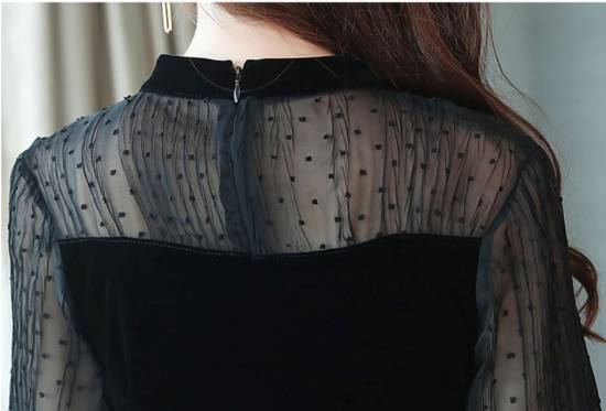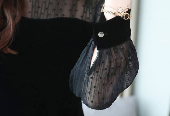 袖部分はシースルーデザインで、よりフェミニンな印象。