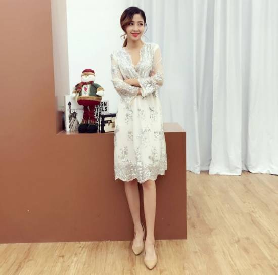 ワンピースはふんわりとしたAラインで、ミモレ丈のフレアなスカートでフェミニンオーラたっぷり♪