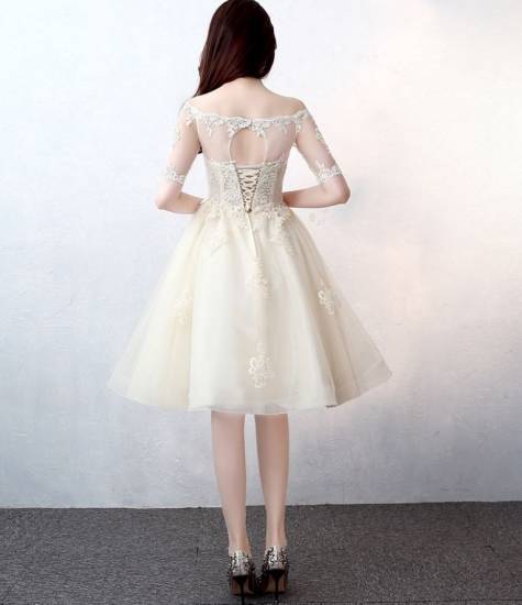 パーティードレス ワンピース レース 半袖 ショート丈 ミッドウエスト オフショルダー シースルー 二次会 お呼ばれ 結婚式 パーティ