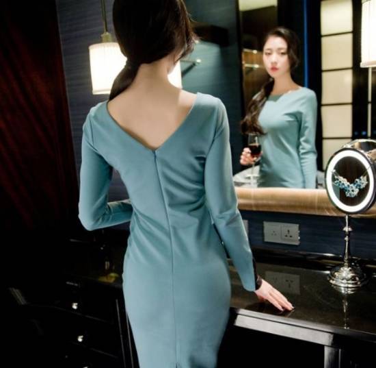 タイトなボディコンがメリハリボディをメイクするドレスは、Vネックの背中魅せで360度抜かりのないデザイン。